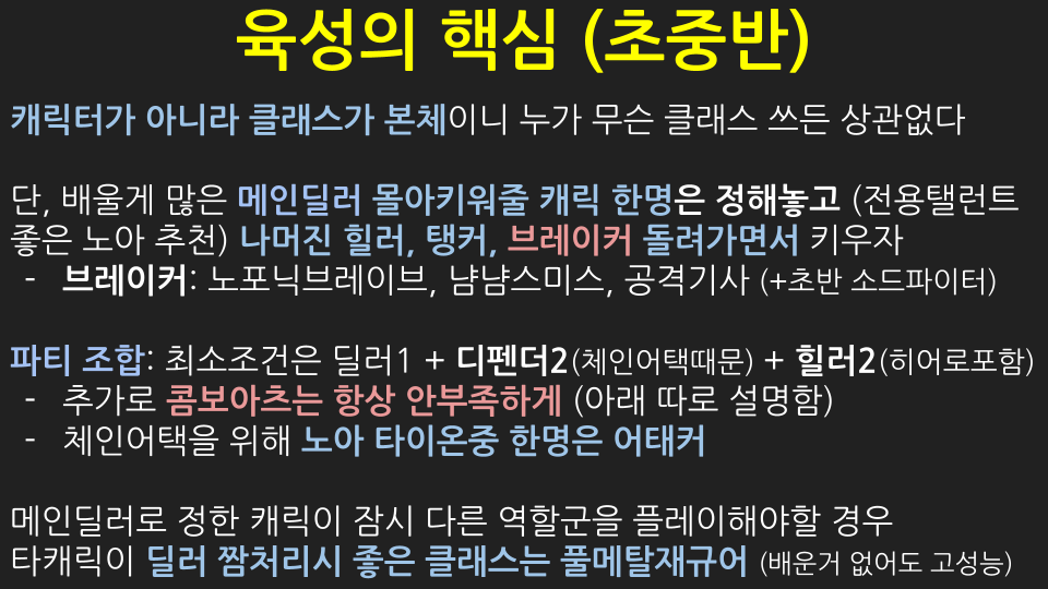 - dlc 챌린지배틀로 클래스해금을 활용 안할 계획이라면 탱커쪽을 미리 키워둬도 좋다