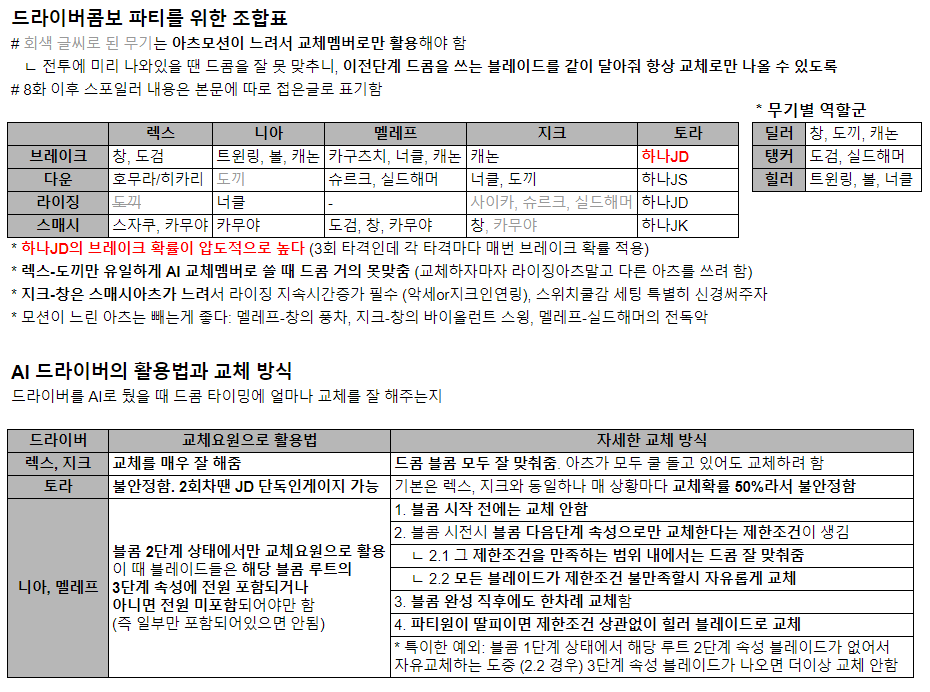 (1) 드라이버콤보 조합표와 AI 드라이버의 교체 방식