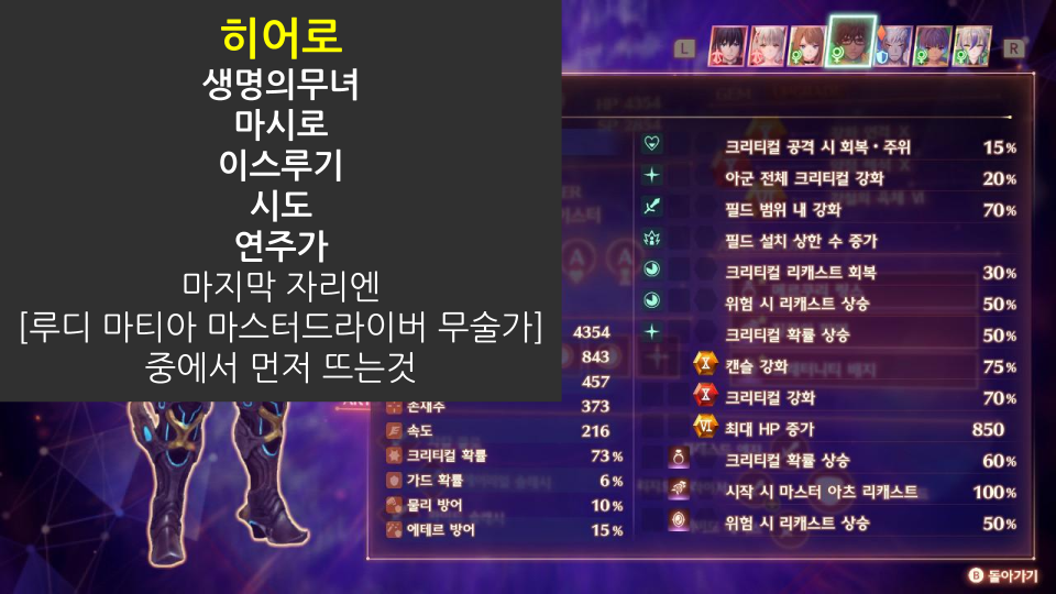 콤보&게이지(스매시or버스트마다 체인게이지 +12%, 별개로 손재주 +90%): 콤보파티에게 좋으며, 아닌 파티에게도 손재주 증가때문에 살만하다
