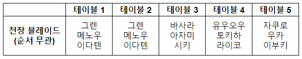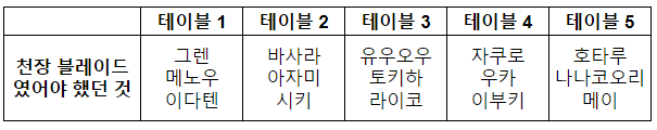 왜 테이블1과 테이블2의 천장 블레이드가 똑같은 것일까!?