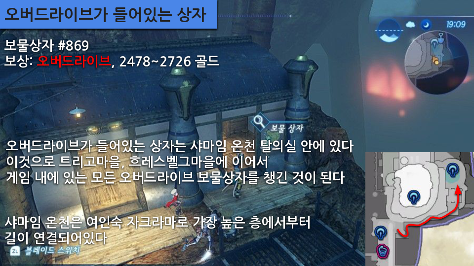 보물상자: 파우치 확장키트, 오버드라이브, 노폰 코인, 실내공격 업 II, III, 스위치단축 II, 마그넷 칩