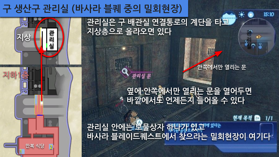 시작해야되는 장소는 상층에 있는 구 생산구쪽이고