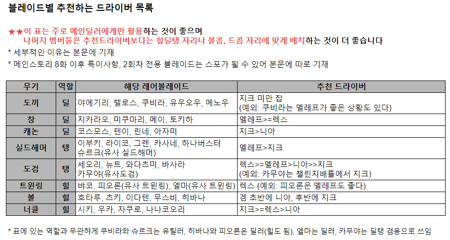 위에서 언급한 본문은 [블레이드별로 가장 어울리는 드라이버 정리] 링크를 참고하자