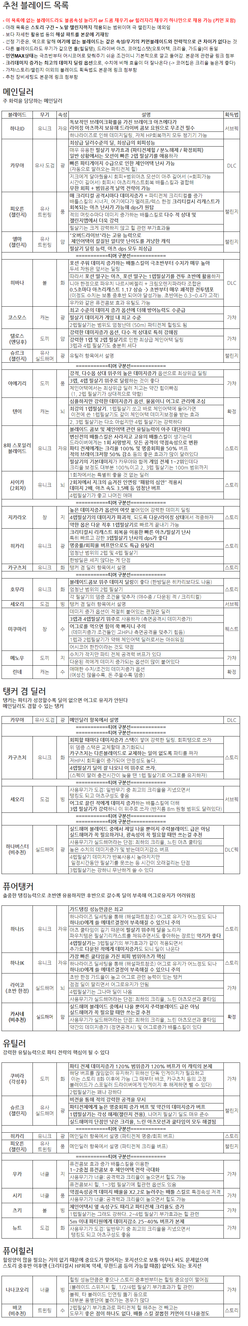 추천 블레이드를 어떻게 조합해 파티를 짤 지는 [파티짜는법 공략 링크]를 참고하면 됩니다