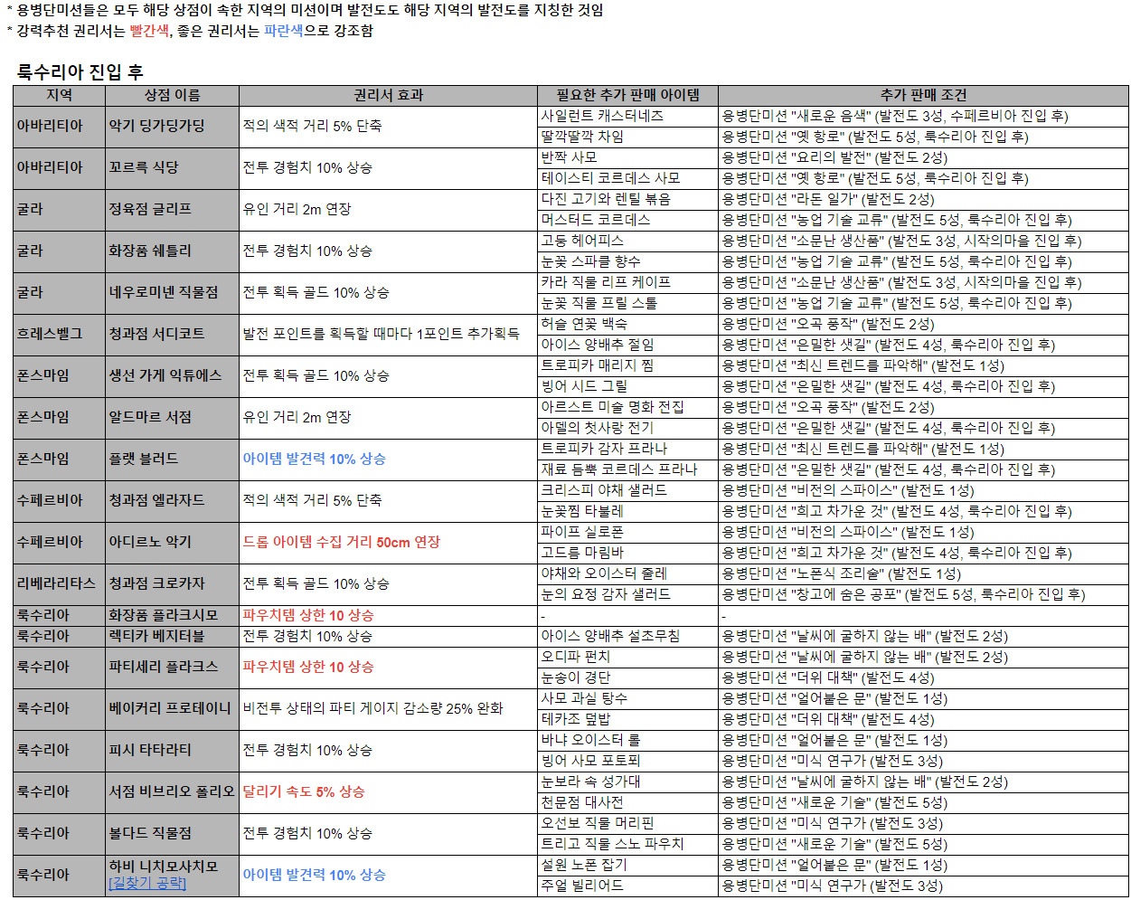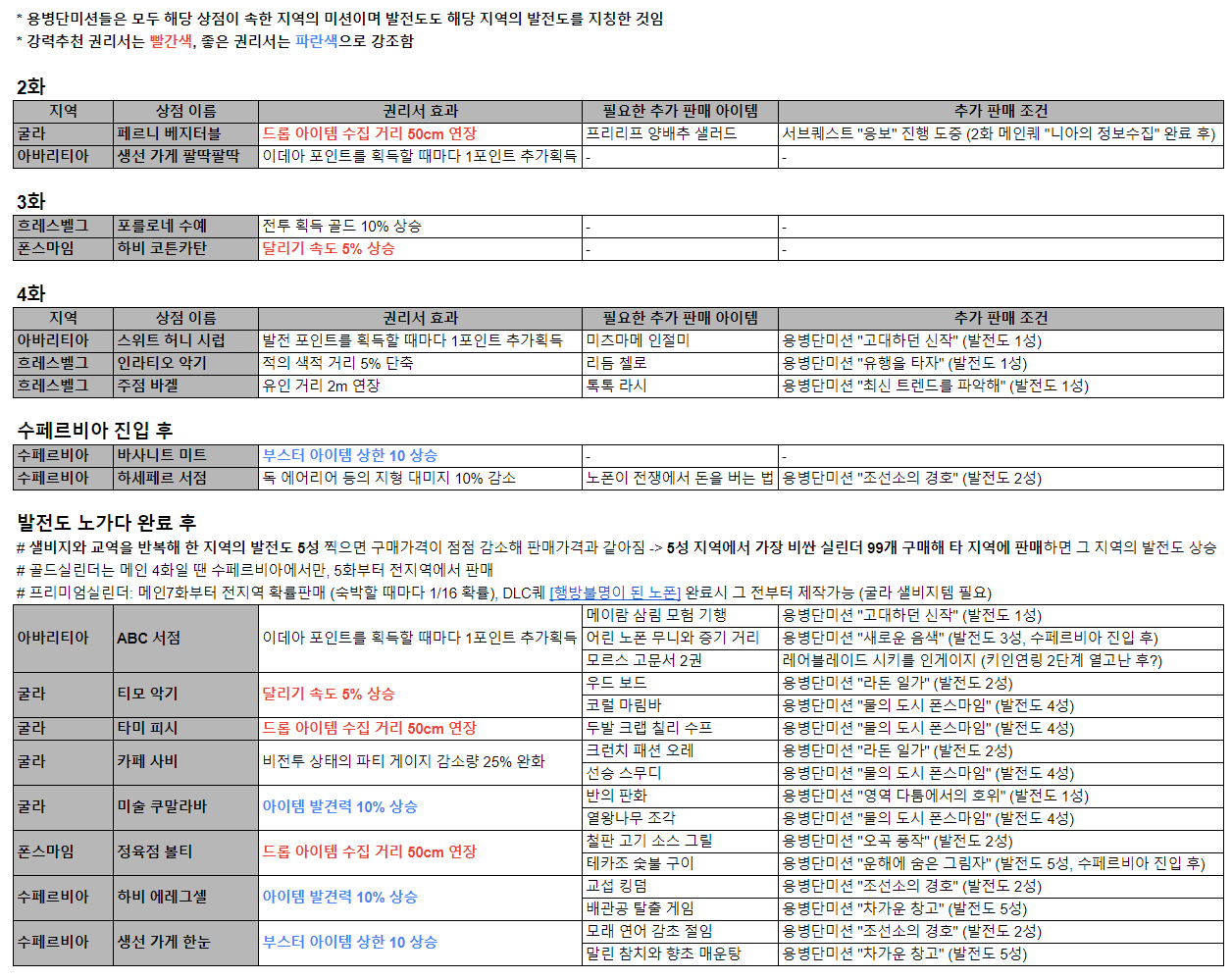 # 수페르비아 마을 진입 후부터 골드 실린더 구매 가능해 발전도 노가다를 할 수 있다. 좋은 보상을 주는 용병단 미션 및 권리서, 좋은 파우치템을 얻고 싶다면 필요한 작업