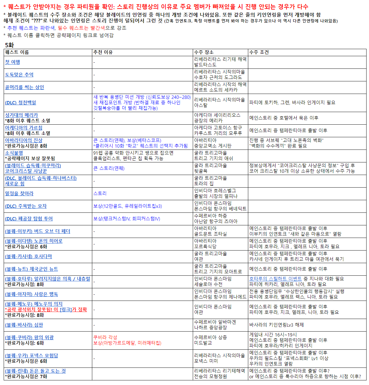 # 5화 퀘스트 목록. 제목링크 탈 수 있는 원글은 [이 페이지]를 참고